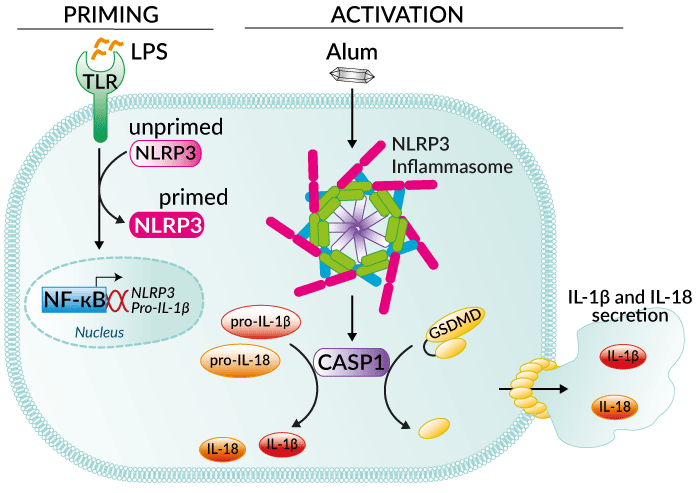 Comprehensive research in vitro demonstrates that alum induces an NLRP3 inflammasome-dependent induction of interleukin-1β (IL-1β) and IL-18 [1].