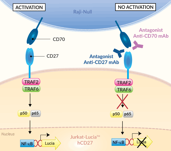 This assay relies on the co-culture of Jurkat-Lucia™ hCD27 and Raji-Null cells: