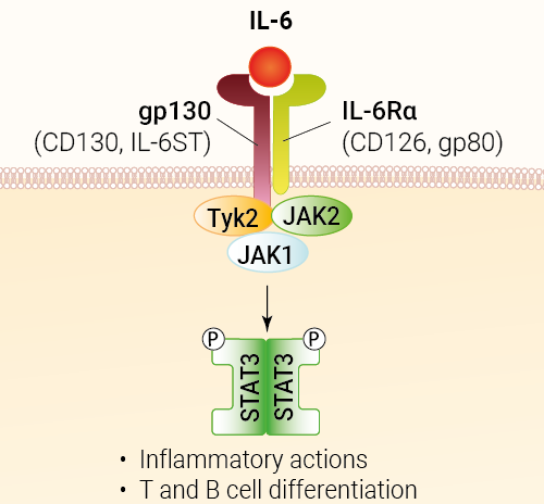 The proinflammatory cytokine IL-6 is one of the most important mediators in the regulation of the immune response, hematopoiesis, and inflammation [1]. It plays roles in chronic inflammation, autoimmune diseases, and cancer. In addition, it has been reported to be involved in the cytokine storm triggered by the corona virus disease 2019 (COVID-19) [2].