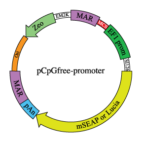 pCpGfree-promoter is a reporter plasmid completely devoid of CpG dinucleotides.