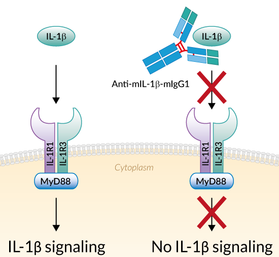 Anti-mIL-1β-mIgG1 is designed to efficiently neutralize the biological activity of mIL-1β. Interleukin 1β (IL-1β) is a soluble pro-inflammatory cytokine that plays a critical role in the host’s response to infection and injury [5].