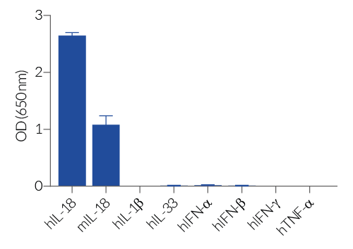 - High sensitivity to human (h) IL-18 and lower sensitivity to mouse (m) IL-18 activity