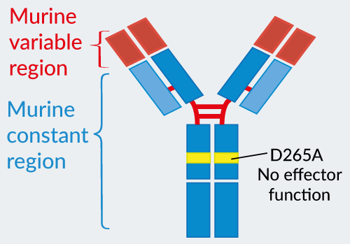 - mIgG1e3 (IgG1 with a replacement of aspartic (D) acid by alanine (A) at position 265 point mutation) is effectorless